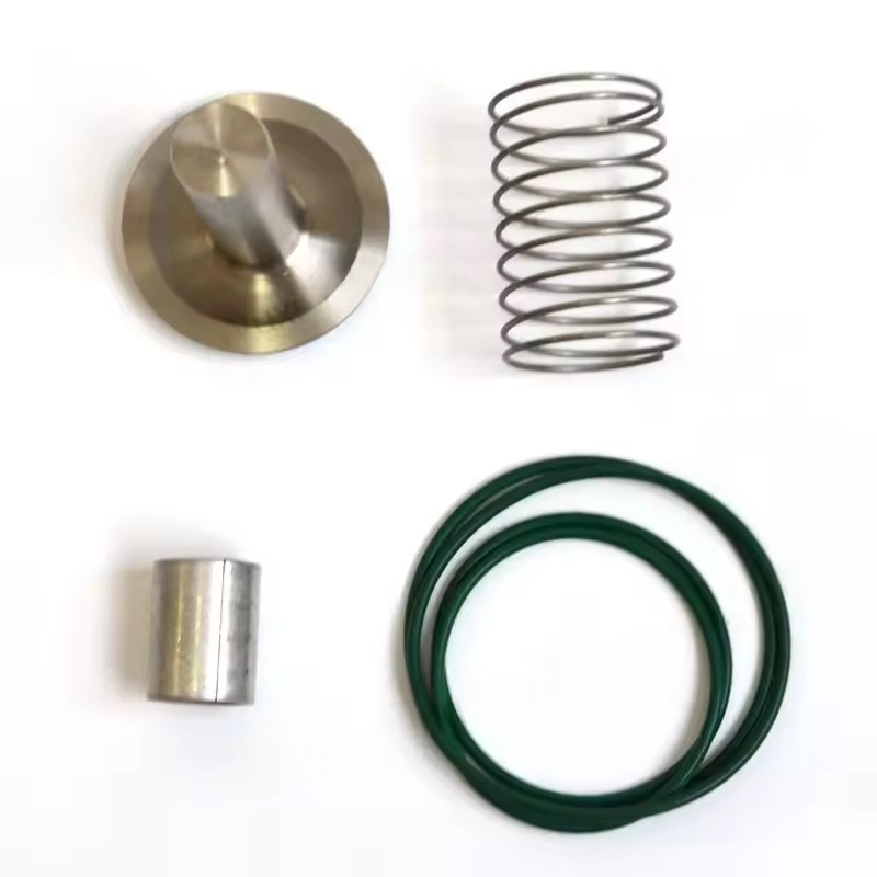 Berikan kekuatan preload untuk menjaga inti katup tertutup. Ketika tekanan buang kompresor lebih besar dari jumlah gaya pegas dan tekanan belakang hilir, inti katup didorong terbuka, dan udara terkompresi melewati; Ketika kompresor berhenti, pegas mendorong inti katup kembali ke posisi semula, memotong jalur aliran balik.